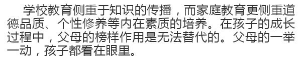 孩子在上學之前,所學的東西都來源于周圍,其中父母的影響是最大的,所以家庭是孩子成長的搖籃,父母是孩子的第一任老師,家庭教育更是教育孩子的起點與基點。良好的家庭教育不僅是造就孩子成才的必要條件,也是優(yōu)化孩子心靈的催化劑,家庭教育的好與壞將直接影響孩子的一生。